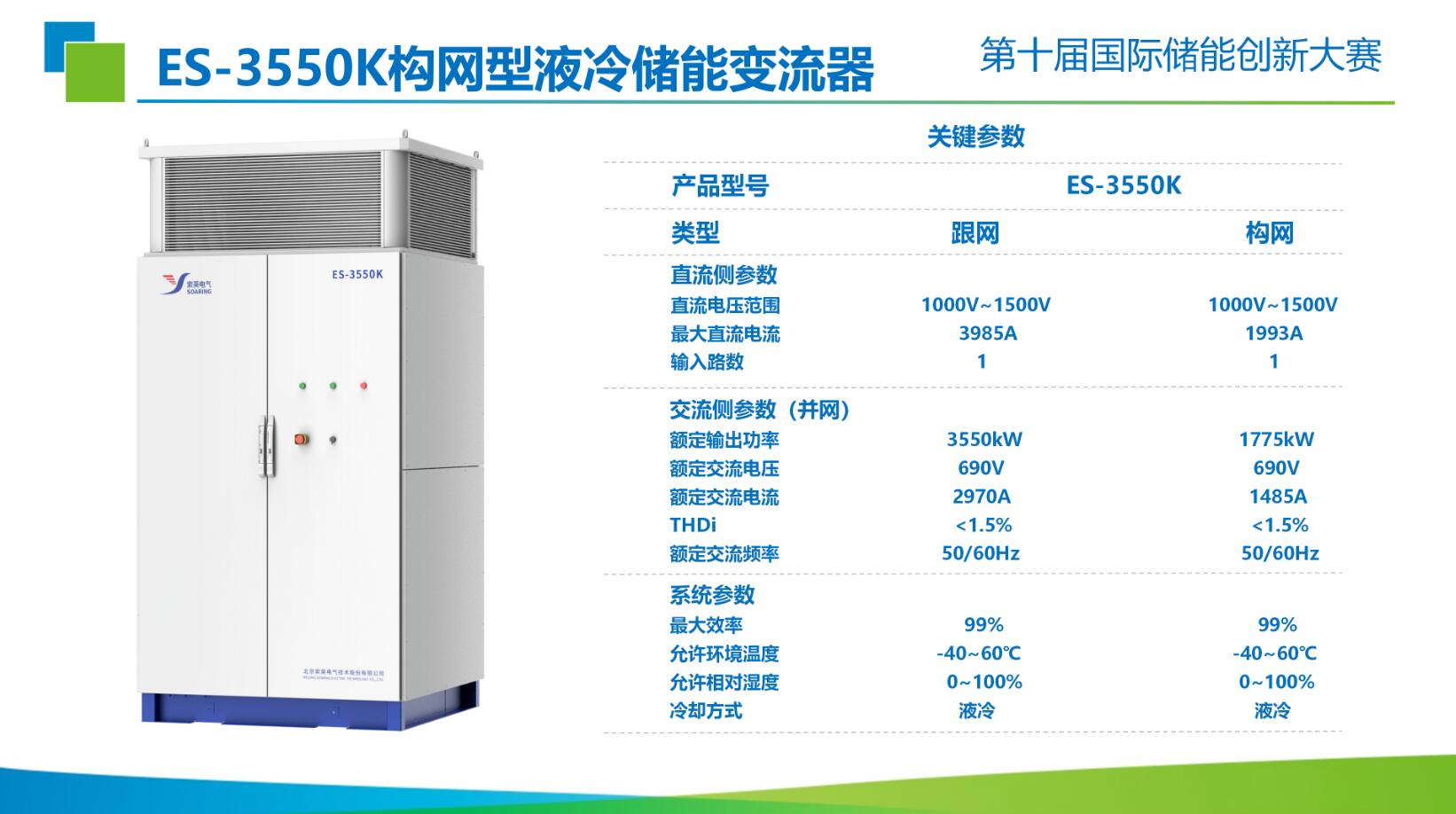与此同时,索英电气自主研发的「ES-3550K构网型液冷储能变流器」荣膺“2026储能卓越产品奖TOP10”,成为构网型储能产品领域的优秀代表。该产品依托先进的液冷散热技术与构网控制技术,可实现与电网的高效协同,具备优异的电压源外特性,能够有效提升电力系统惯量与稳定性,适配大型储能电站、新能源基地等多场景应用,为新型电力系统建设提供支撑。