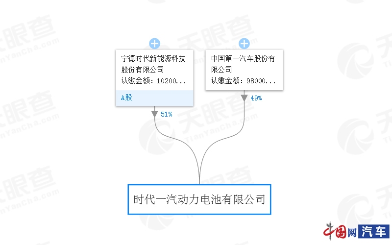 记者根据天眼查获悉,由宁德时代和一汽集团共同出资组建了一家新能源公司—时代一汽动力电池有限公司。公司成立于2019年1月31日,公司注册资本为20亿元人民币,公司法定代表人为曲涛,行业为电气机械和器材制造业,注册地址为霞浦县经济开发区长富路5号。