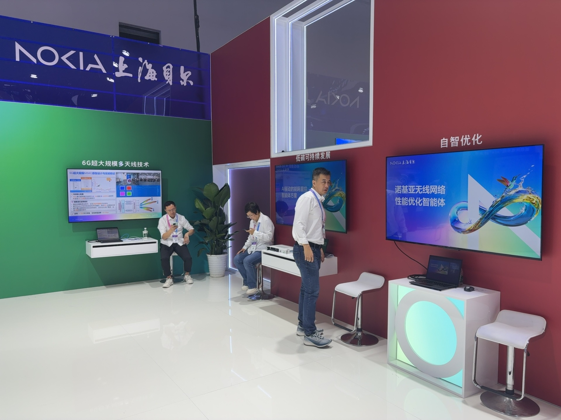 在前沿技术领域,诺基亚贝尔展示了面向 6G 的超大规模多天线技术,采用低复杂度、高效能的波束赋形方案,提升多用户 MIMO 传输的空口速率,展现未来网络架构的前瞻能力;同时,通过无线网络性能优化智能体与 “意图驱动、智能预判、实时响应、知识闭环” 的全流程能力,加速迈向L5 级完全自智网络,实现最高 95% 的网络能效优化。