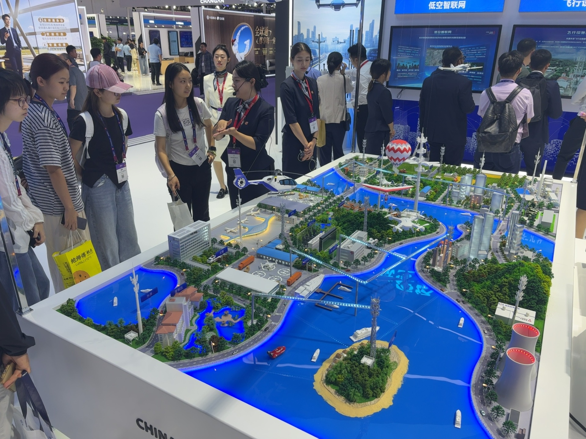 低空经济沙盘演示:通过沉浸式沙盘展示 “空 - 地 - 塔” 协同的低空生态,涵盖无人机起降、空中交通管理、应急救援等场景,展现铁塔在低空经济中的 “基础设施 + 服务” 双重价值。