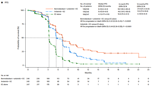 [4]Cheng Y, Chen J, Zhang W, et al. Benmelstobart, anlotinib and chemotherapy in extensive-stage small-cell lung cancer: a randomized phase 3 trial. Nat Med. 2024;30(10):2967-2976. doi:10.1038/s41591-024-03132-1.