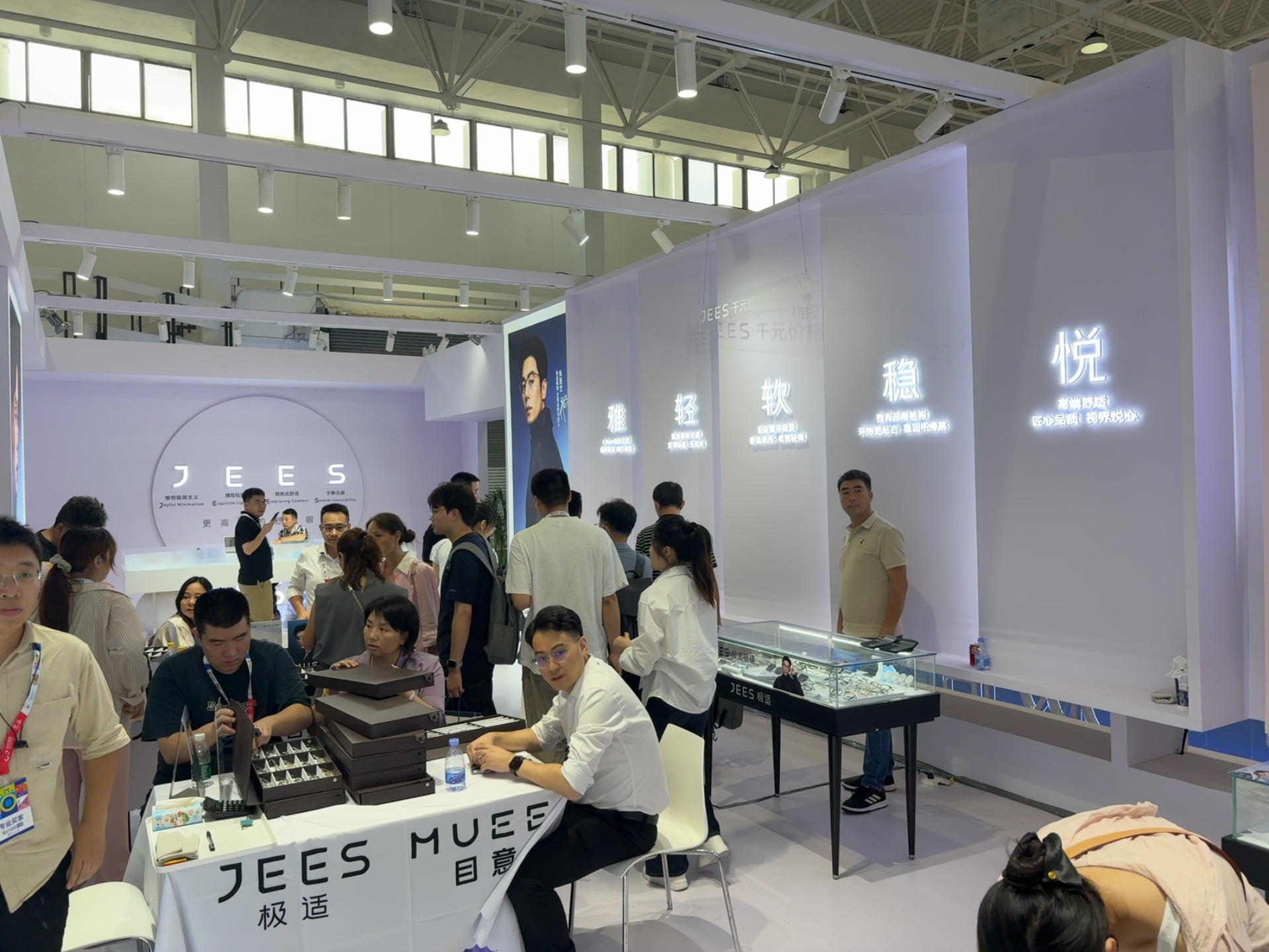 2025 年第三十六届中国国际眼镜业展览会(CIOF2025)上,JEES 极适与 MUEEE 目意双品牌强势联动,以 “舒适科技 + 明星赋能” 的组合策略惊艳亮相。其中 JEES 极适主打 “更高‘极’的舒适眼镜”,MUEEE 目意则凭借明星代言人陈哲远的流量加持,共同成为展会时尚舒适眼镜领域的双焦点,吸引了大批消费者与行业人士的深度关注。