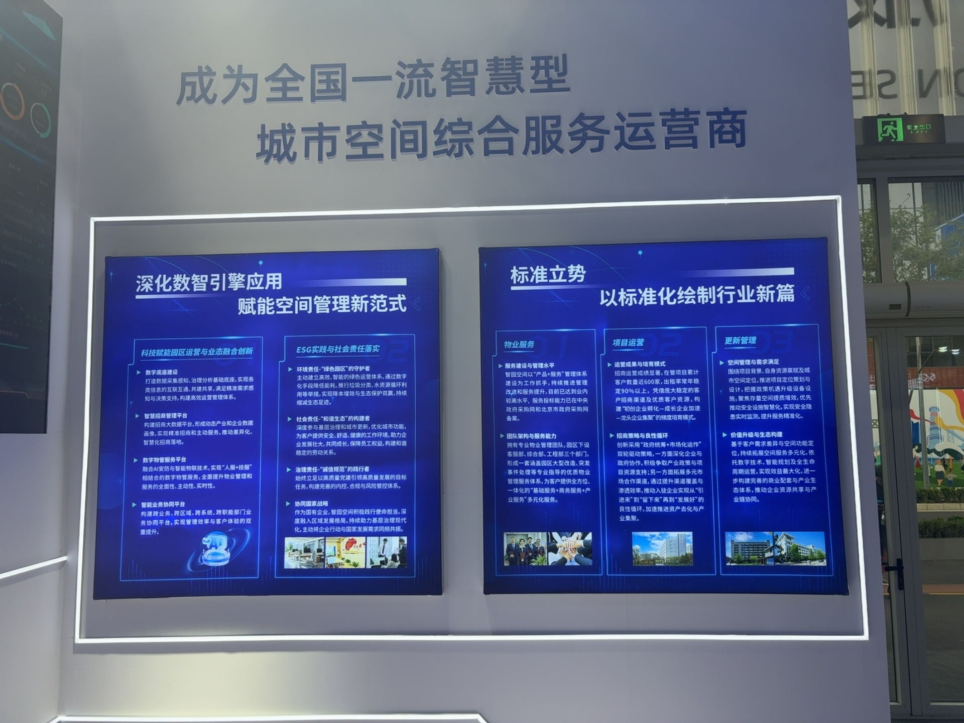 智园空间在展台上呈现了覆盖 “运营、技术、标准” 的城市服务全能力矩阵: