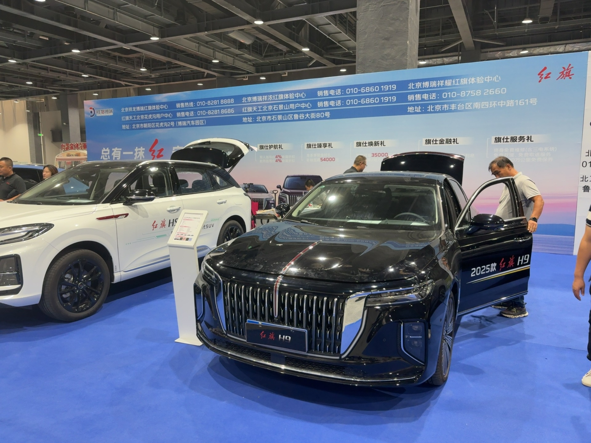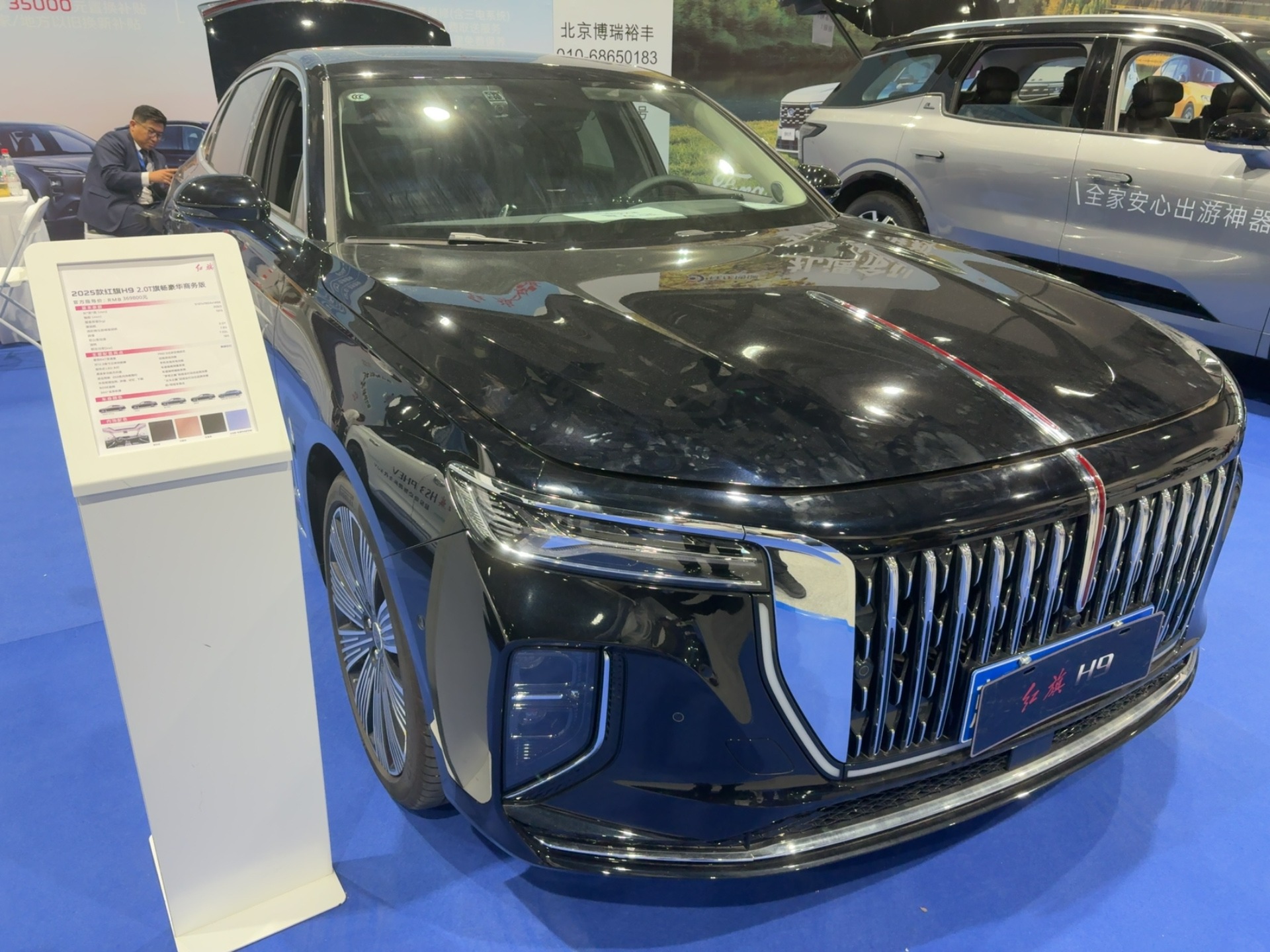 红旗 H9:作为中国豪华轿车的 “旗舰标杆”,黑色车身搭配直瀑式格栅,庄重与奢华属性拉满。其 2025 款车型在细节与科技配置上的升级,吸引大批商务精英与国潮拥趸驻足,不少观众体验后表示 “这是‘中国豪华’的身份名片”。