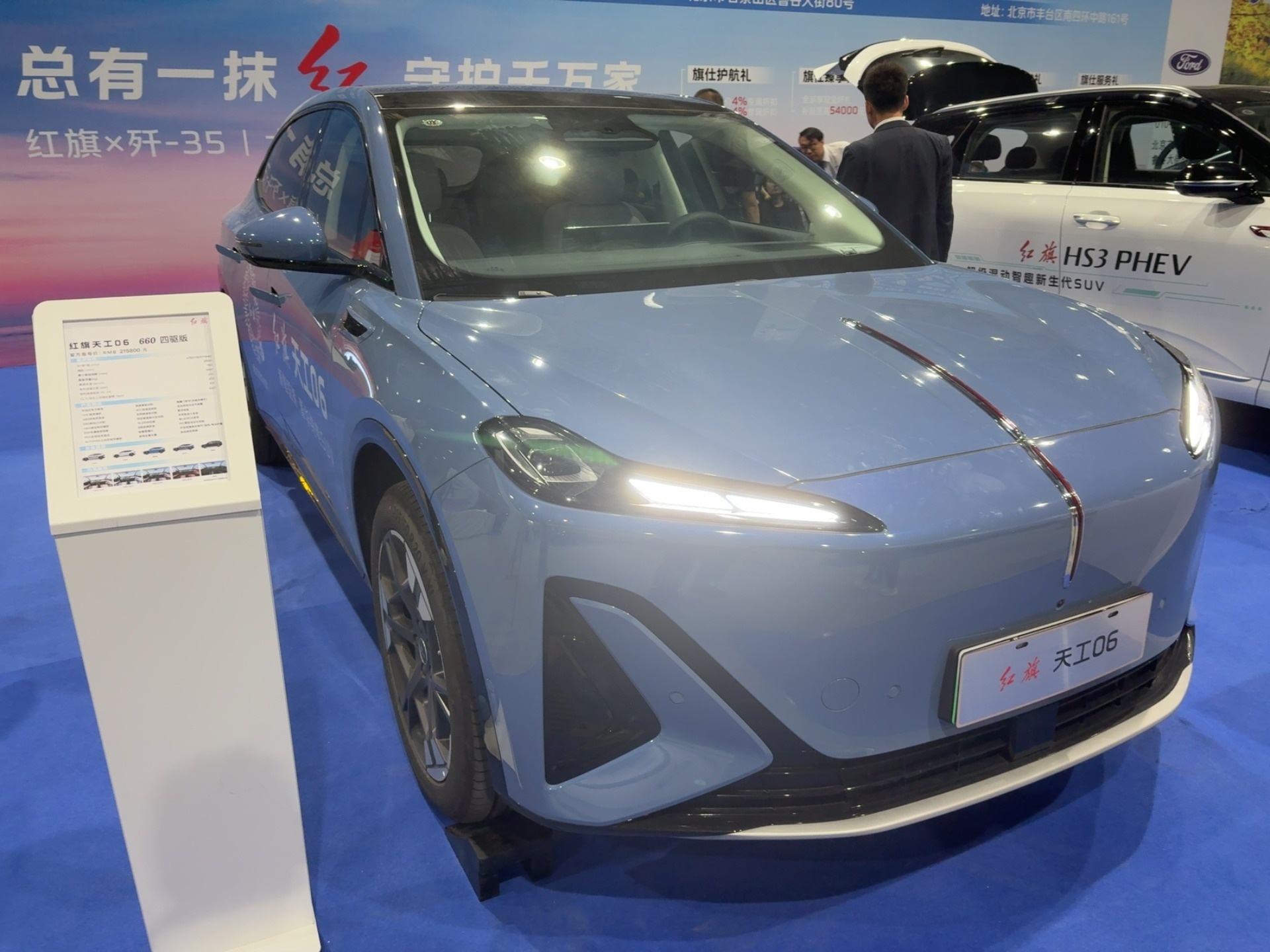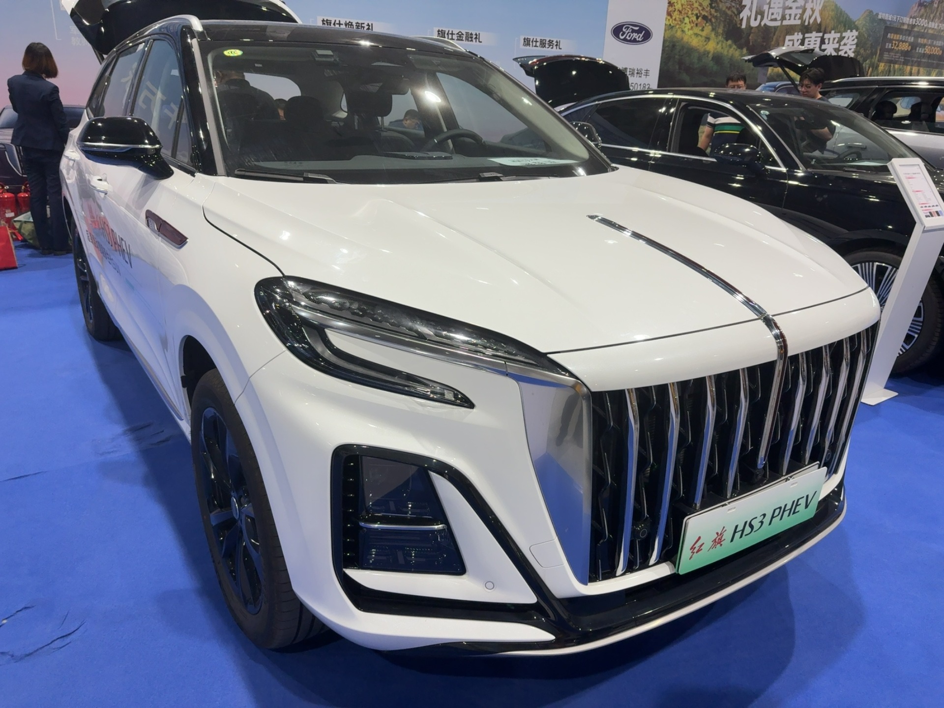 HS3 PHEV:红旗插混阵营的 “年轻先锋”,白色车身搭配运动化设计,插混属性凸显。作为品牌在新能源领域的年轻化力作,其 “绿牌出行 + 国潮设计” 的组合引发热议,展台前咨询 “家用插混 SUV” 的消费者络绎不绝。
