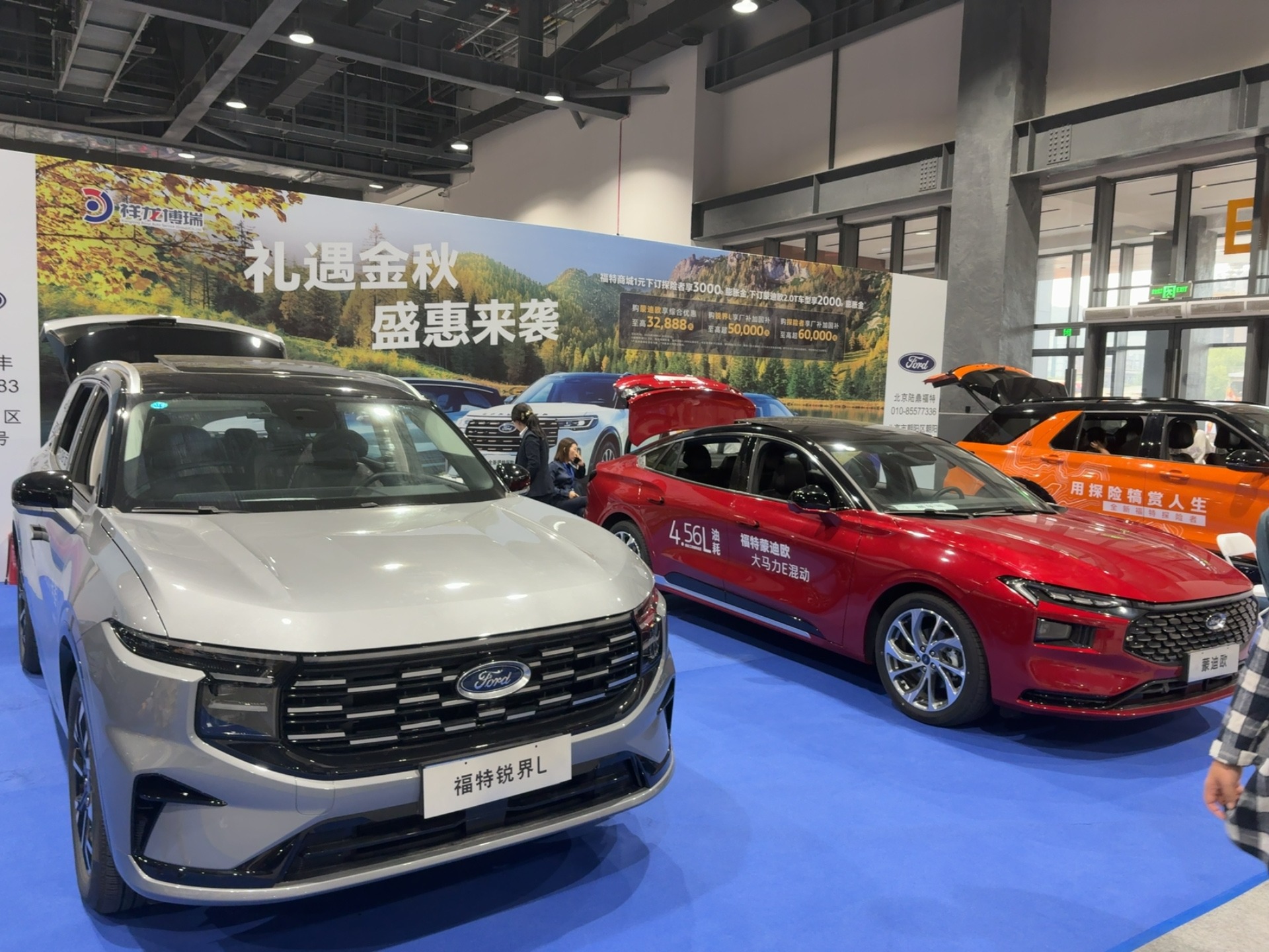 2025 第三十八季博瑞汽车大集上,福特以 “礼遇金秋 盛惠来袭” 为主题强势参展,带来探险者、蒙迪欧、锐界 L组成的美式豪华矩阵,覆盖硬派越野、混动轿车、家用 SUV 全品类,凭借百年美式基因、混动技术突破与展会专属福利,成为户外爱好者与家庭用户的关注焦点。