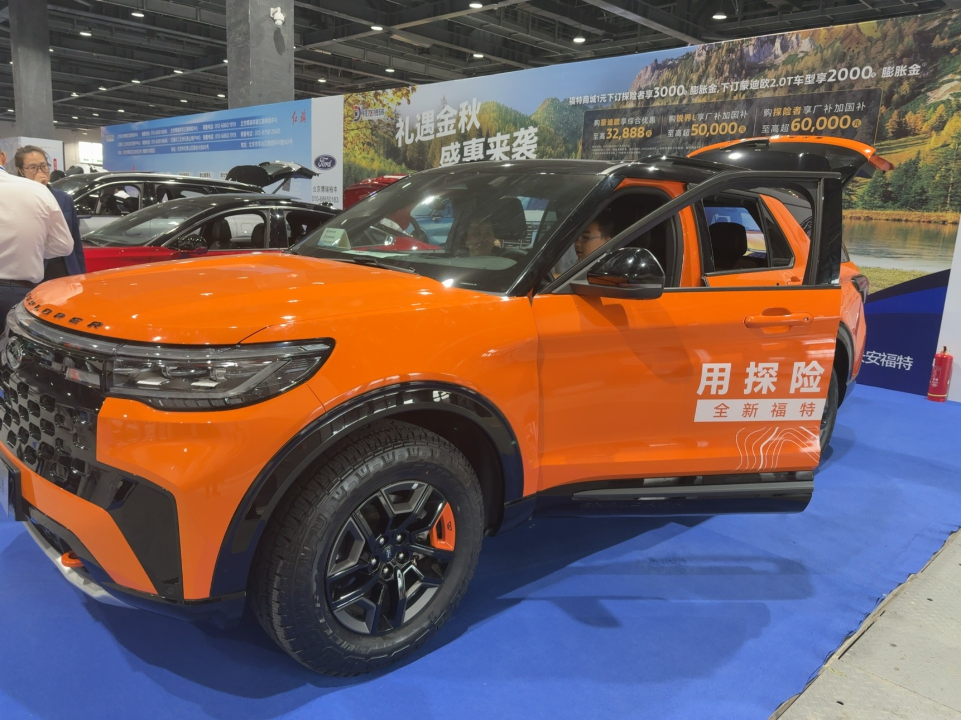探险者:作为硬派 SUV 的 “标杆级” 车型,橙色车身搭配粗犷格栅,户外探险属性拉满。其硬核通过性与宽敞空间,吸引大批户外爱好者驻足,不少观众体验后表示 “这是‘山川湖海 + 全家出行’的全能之选”。