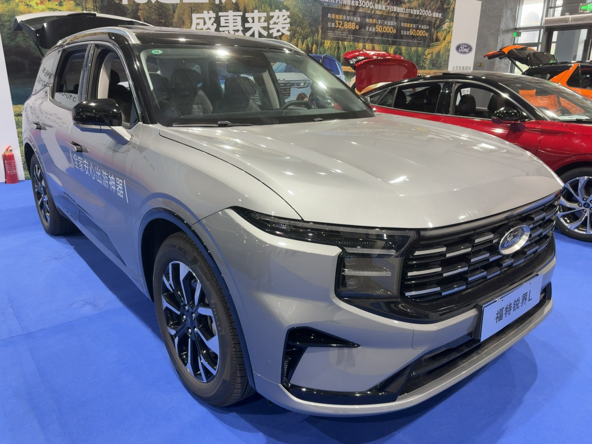 锐界 L:家用 SUV 的 “空间王者”,银灰色车身搭配大气设计,家用属性拉满。其 “全家安心出游神器” 的定位,使其成为二胎家庭的心头好,现场观众通过座舱体验,直观感受其 “三排满员也舒适” 的产品力。