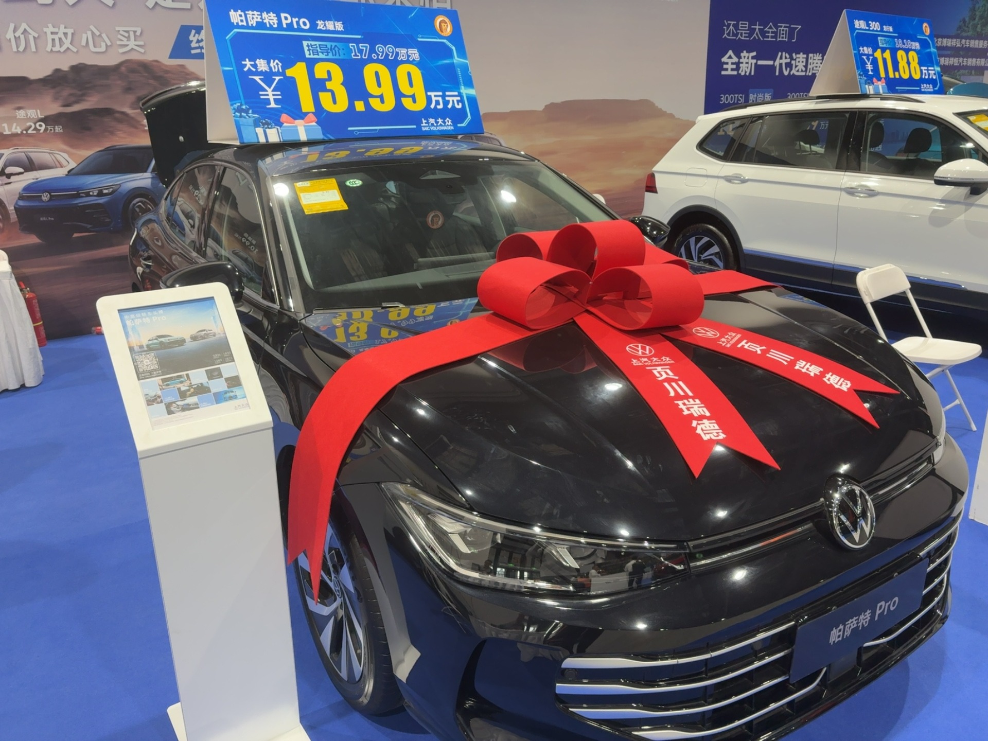 帕萨特 Pro:德系轿车的 “商务标杆”,黑色车身搭配大气格栅,商务属性凸显。13.99 万元的大集一口价,让其成为职场精英的通勤优选,展台前咨询 “商务接待 + 日常通勤” 用车场景的观众络绎不绝。