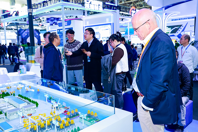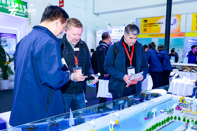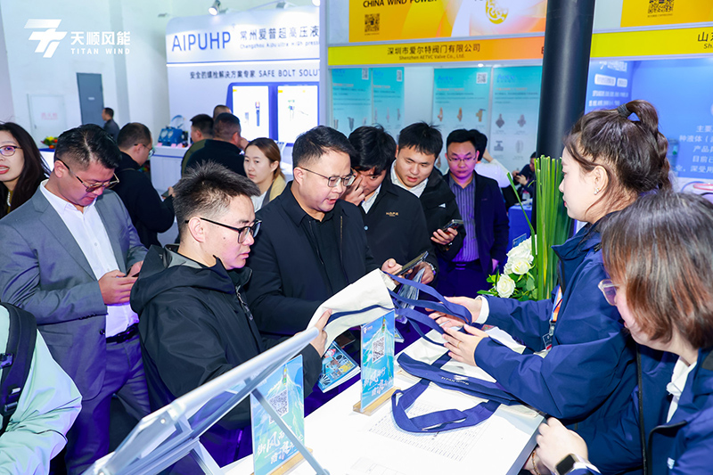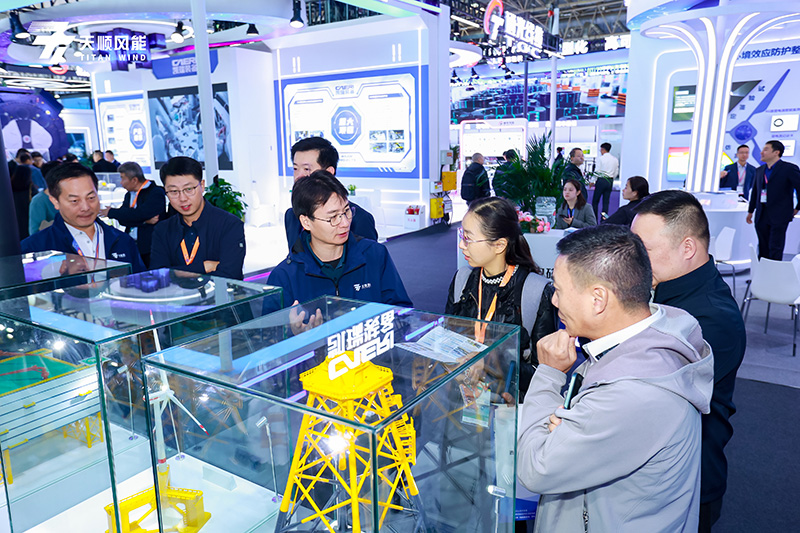 此次天顺风能的展台设计颇具心思,以蓝白为主色调,简洁又贴合清洁能源主题,视觉效果鲜明,更融入海洋意象,呼应 20 年深耕风电、聚焦海工的产业方向,让参观者直观感受到天顺20年来的思考沉淀以及未来发展方向,营造出专注的交流氛围。