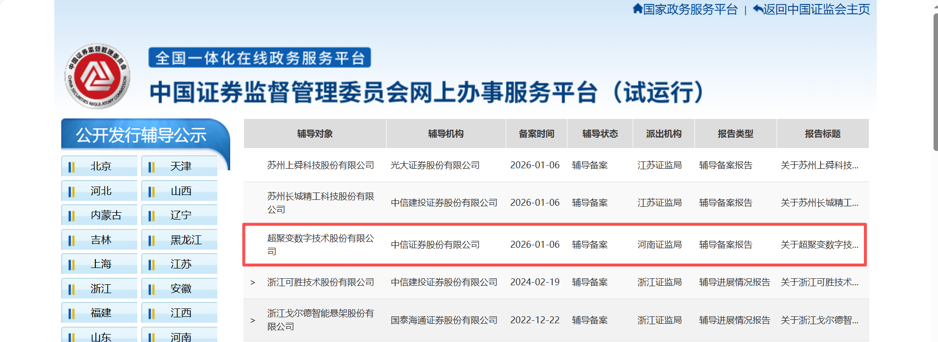 中国证监会官网显示,1月6日,超聚变数字技术股份有限公司(以下简称“超聚变”)进入辅导备案阶段,中信证券担任辅导机构。