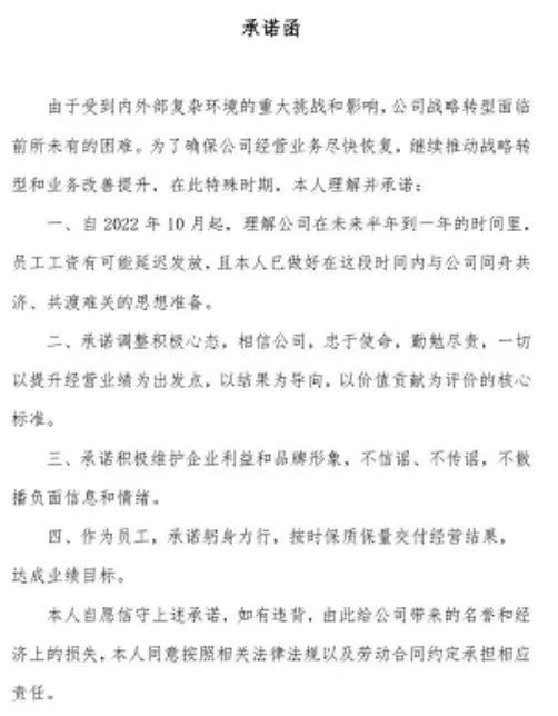 11月3日晚间,#国美停发员工工资#冲上热搜第一,引发热议。据悉,在近日国美总部的全员大会上,国美电器董事长黄秀虹表示:公司到12月底之前,只会给员工上社保,不会再发工资了。黄秀虹还补充:今后中长期,工资发放也存在不确定性。会后公司会出具一份承诺书,员工可以各自去找主管签字。有国美员工称:这是变相逼人离职。