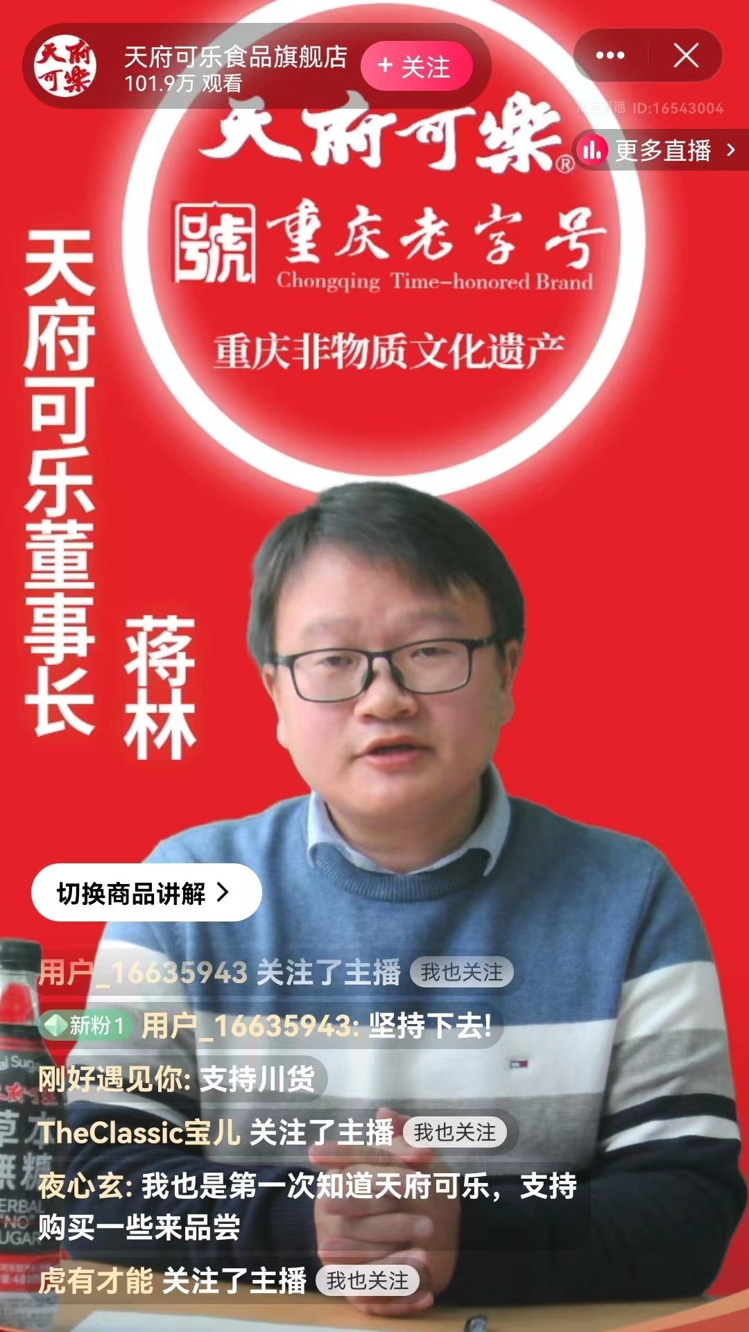 1月5日,天府可乐董事长蒋林现身淘宝直播间回应破产传闻,这场直播收获超百万观看量。