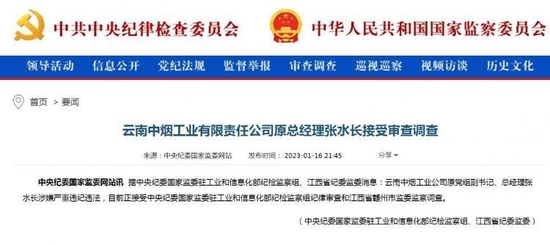 云南中烟工业公司原党组副书记、总经理张水长涉嫌严重违纪违法,目前正接受中央纪委国家监委驻工业和信息化部纪检监察组纪律审查和江西省赣州市监委监察调查。