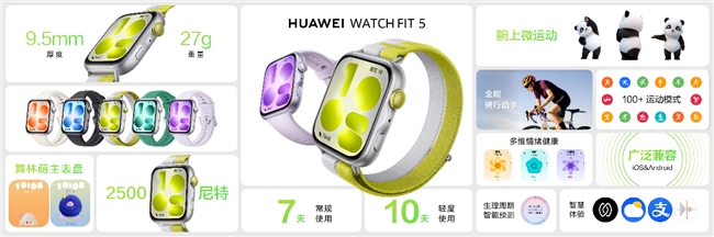 HUAWEI WATCH FIT 5系列带来华为在其智能穿戴设备上首发的“微运动”功能,为久坐忙碌、缺乏运动时间的用户提供全新的运动方式。HUAWEI WATCH FIT 5 Pro还支持越野跑、高尔夫等多项专业户外运动;根据华为实验室数据,全系列轻度使用场景续航可长达10天,缓解用户电量焦虑。目前数字款HUAWEI WATCH FIT 5已开启预售,4月29日开售,售价1099元起,国补后到手价935元起;HUAWEI WATCH FIT 5 Pro 4月29日开启预售,5月15日正式开售,售价2099元起,国补后到手价1785元起。