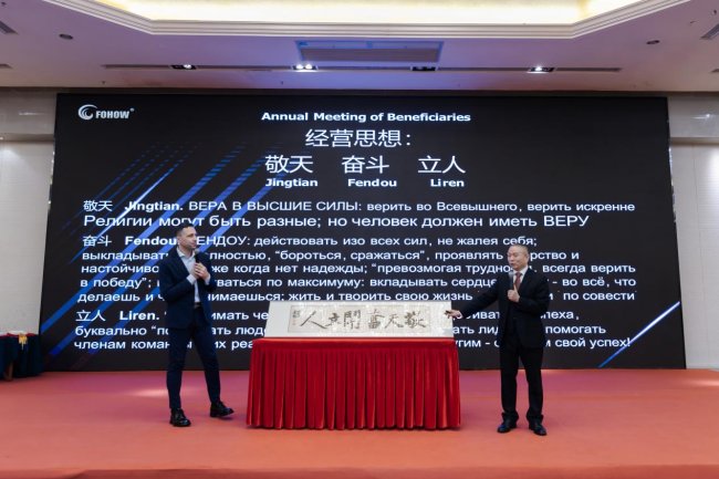 文化交流会上,凤凰制药集团创始人YUFEI将这份感受,溯源至企业扎根的文化土壤——“敬天 奋斗 立人”。