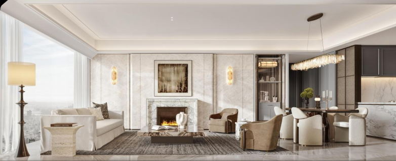 从全球最高住宅纽约中央公园塔“Above All Else”的至高无上,到香港聂歌信山道8号的万千气度。世界顶级城市的核心区豪宅,基本都走向了超高层形态。SKY ONE同样如此,在严格限高的江岸线上,以150-198米的建筑海拔,成为了核心区最后、也是唯一的超高层奢宅群。