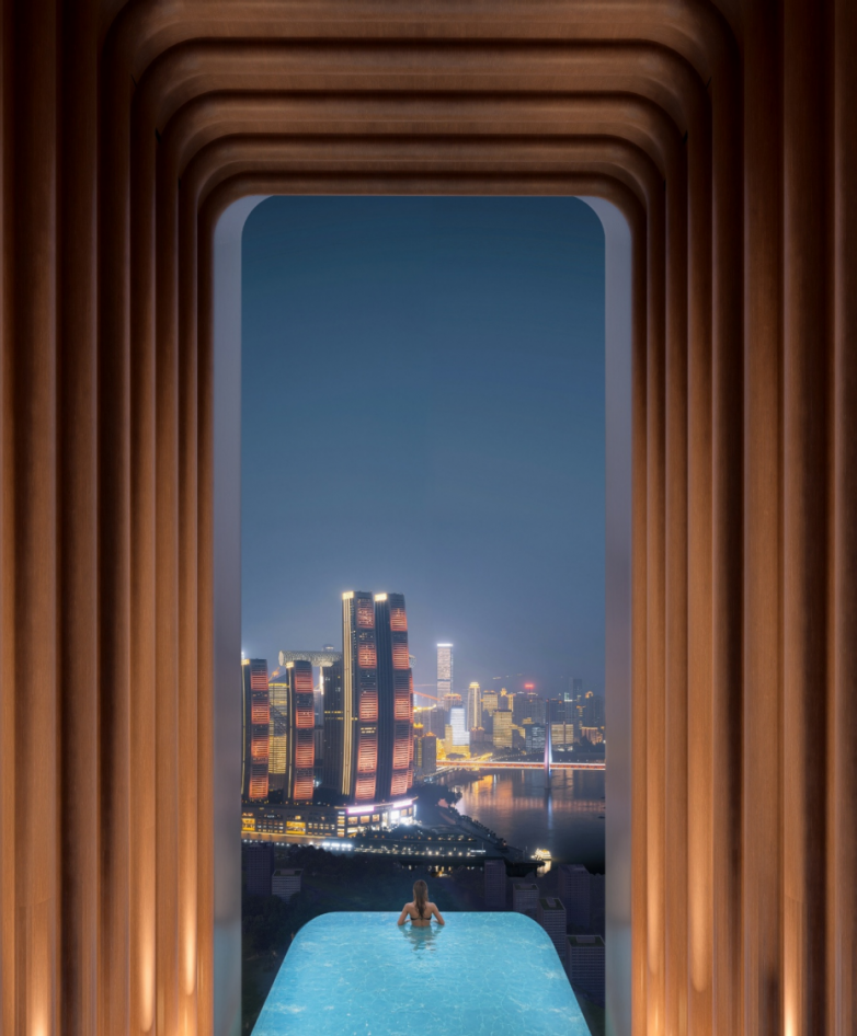 9席亿级顶复孤品:在每栋建筑的塔冠,SKY ONE规划了亿级顶复CPNINE,全球仅9席,将是重庆天际线上最独特的“冠冕”。它的设计灵感源自“天空之眼”与“世界之门”,是整个建筑的点睛之笔。五重空中花园对语星辰,天际悬空泳池尽揽落日晨晖,这不仅是建筑美学的极致表达,更是塔尖人物突破束缚、俯瞰万象的人生写照。