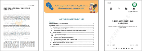 2025年6月,中华中医药学会发布《儿童青少年近视中西医一体化综合防控指南》(T/CACM 1653—2025), 明确肯定重复低频红光可提高儿童青少年的裸眼视力(共识建议)、控等效球镜度增加(D级证据,强推荐)、抑制眼轴生长(D级证据,强推荐)、增加脉络膜厚度(B级证据,强推荐),且不良反应少见(共识建议)。