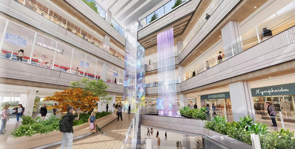 “我们打造的不是单纯的购物中心,而是区域居民的‘幸福感基地’。”项目团队表示,社交空间的营造也是核心亮点。屋顶约800㎡公园与4层草坪广场电梯直连,配备遮阳棚、喷雾系统与浅水池等设施,无论晴雨寒暑都能惬意游玩。此外,专为育儿家庭设计的亲子休憩区、约500㎡宠物专属乐园,以及贯穿2-4层的15米高水幕景观中庭,让自然与社交无缝融合。