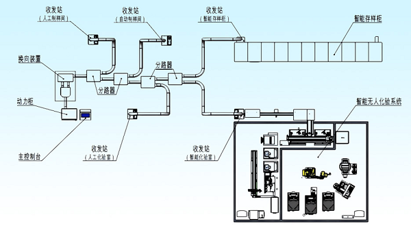 气动高速传输:专利气动传输系统,实现样瓶在全系统中的快速、封闭式流转,支持多点对接与动态路径调度,杜绝污染,效率倍增。