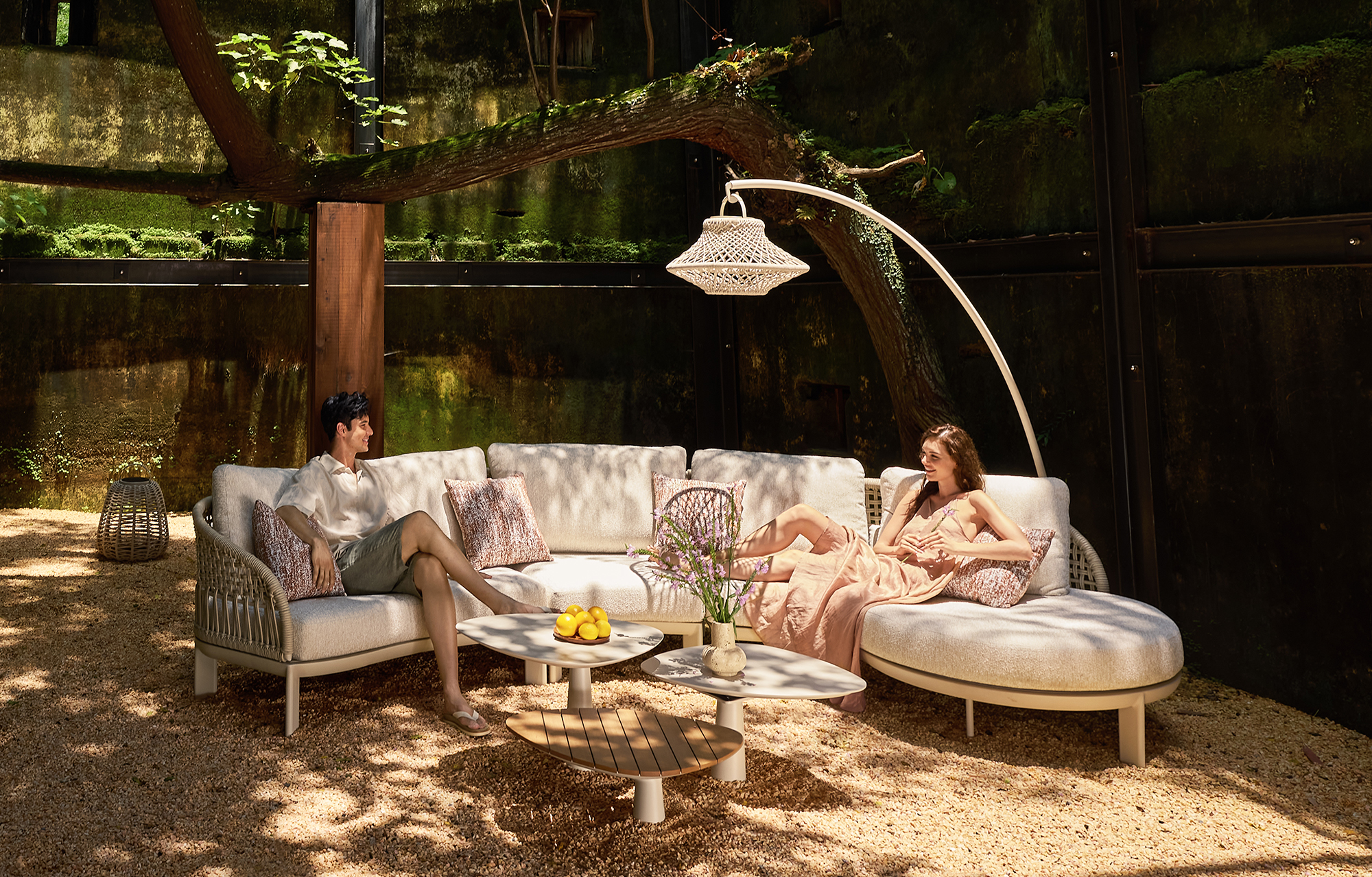 亚帝此次携5个全新设计系列,30余款新品亮相本届家博会,希望通过户外家具的链接,将日光、空气、绿意的度假生活理念融入城市居所。对话自然,保留城市记忆,构造城市与自然共生的度假之家,持续探索当代“无界式”人居美学。