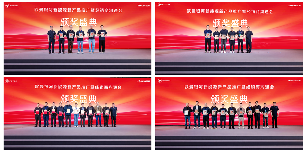 在颁奖环节中,欧曼依次颁发牵引车新能源销量贡献奖、电驱桥推广先锋奖、区域突破奖、杰出新锐奖四大奖项,分别表彰销量领跑、技术推广领先、市场开拓有力、新锐成长强劲的优秀经销商团队。获奖伙伴以实战经验验证市场潜力,以扎实服务赢得用户信赖,不仅为欧曼新能源业务注入增长动力,更带动区域渠道整体提升,让欧曼新能源重卡更快走进终端、服务产业。