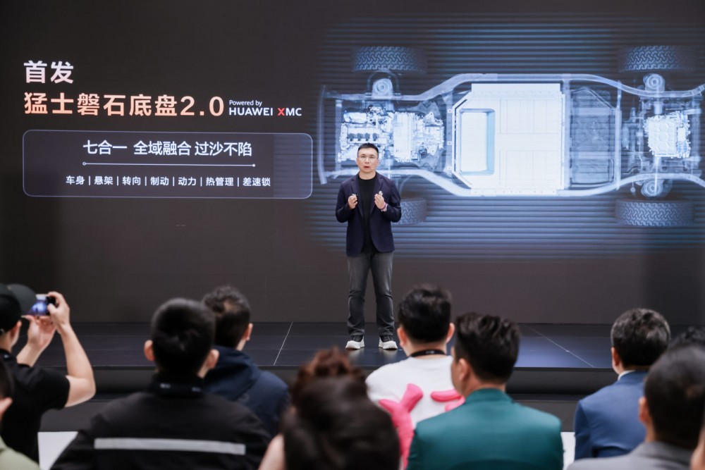 在此架构下,猛士磐石底盘迎来2.0重磅迭代。通过引入HUAWEI XMC乾崑数字底盘引擎与AI技术,底盘控制从“被动响应”进化为“主动预判”,相当于给底盘装上了“眼睛”和“大脑”,能提前洞察路况并毫秒级调整,让普通驾驶者也能拥有越野老炮般的从容掌控感。