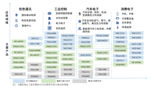 截至目前,纳芯微已经能为客户提供800余款可供销售的产品型号,广泛应用于信息通讯、工业控制、汽车电子和消费电子等领域。