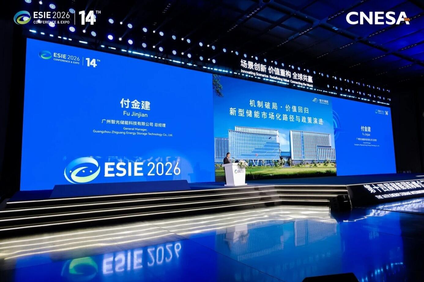 2026年3月31日—4月3日,第十四届储能国际峰会暨展览会(ESIE2026)在北京首都国际会展中心隆重举行。作为储能行业年度盛会,本次峰会汇聚行业专家、企业代表,围绕新型储能市场化发展、政策演进与技术创新等核心议题展开深度研讨,为产业高质量发展凝聚共识。广州智光储能科技有限公司总经理付金建受邀出席主论坛,发表题为《机制破局·价值回归-新型储能市场化路径与政策演进》的主题演讲,深度解析行业发展趋势,提出储能产业正从价格竞争转向价值竞争的核心判断。