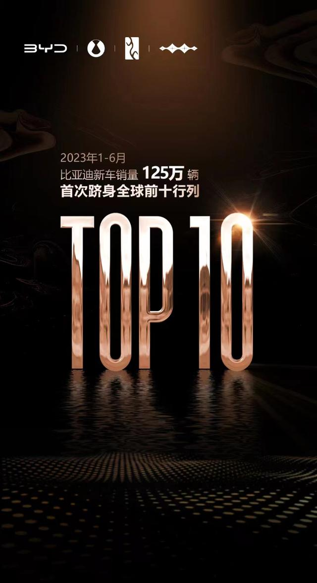 继2022年11月首夺中国市场月度销量冠军之后,比亚迪在2023年上半年再次创下多个销量记录:在国内,比亚迪夺得了今年上半年车企、品牌双料冠军;在全球,比亚迪以125万辆的销量,首次进入全球前十。