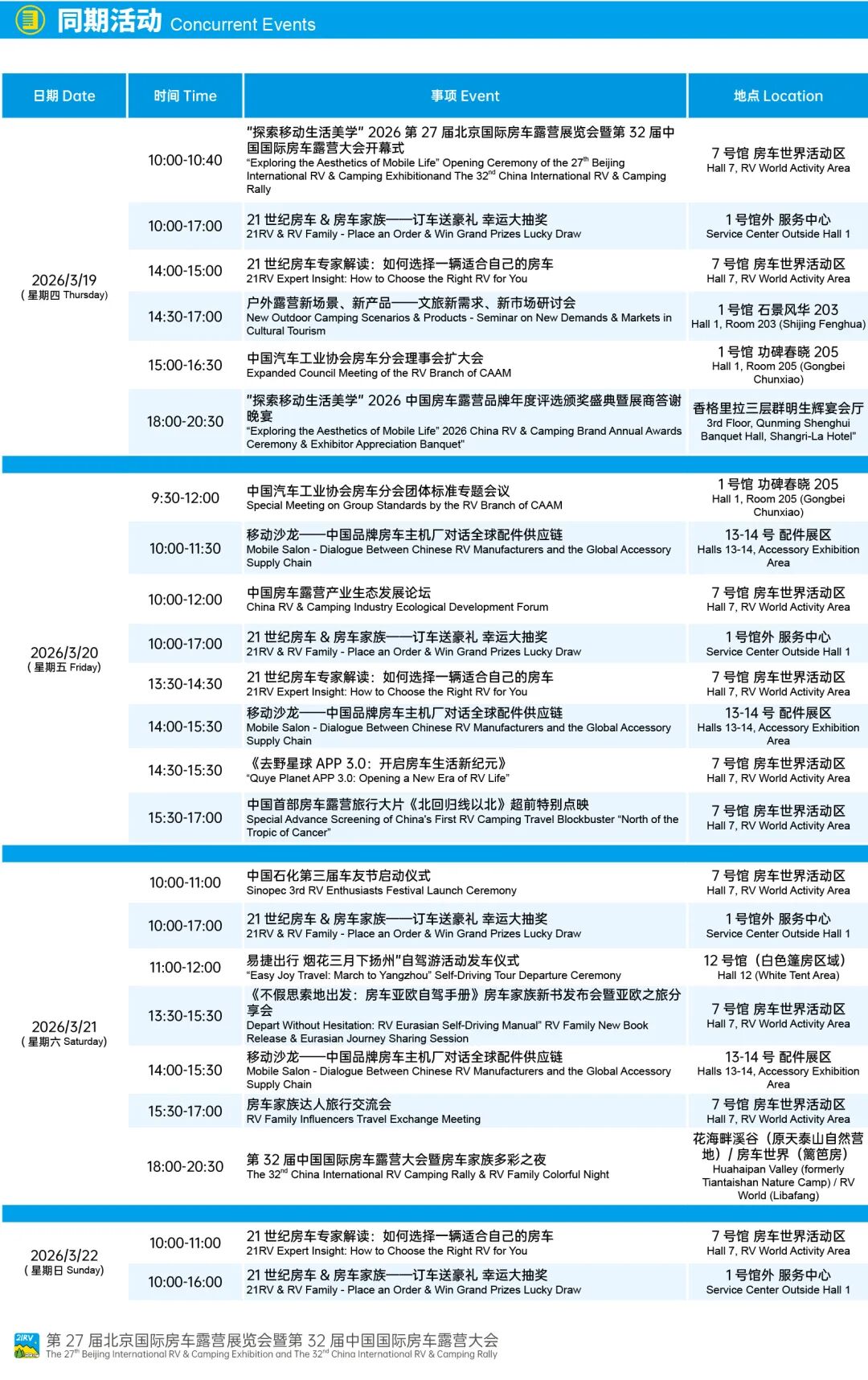 本届北京房车展由中国汽车工业协会房车分会指导,房车世界集团、21世纪房车、房车家族联合主办,房车世界(北京)展览有限公司承办,东方新影科创(北京)文化有限公司特别支持,并获得了中国汽车摩托车运动联合会汽车露营分会、北京房车露营自驾旅游协会、中国品牌房车联盟的鼎力支持。展会设置房车整车、房车配件、露营大会三大主题区域,全面覆盖房车露营全生态链,立体化呈现产业前沿成果。