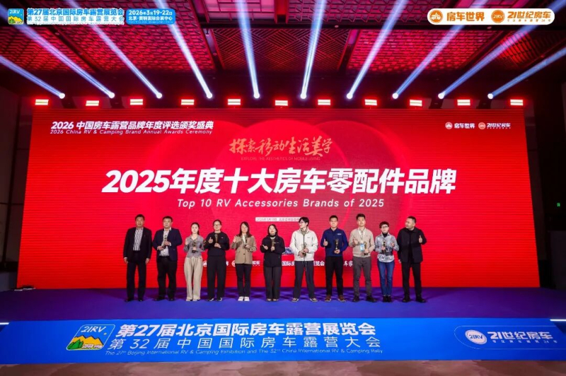 展会首日晚间,备受瞩目的“2025中国房车露营行业年度颁奖盛典”举行。盛典颁发了年度房车品牌、年度零配件品牌、年度经销商品牌等多个奖项。