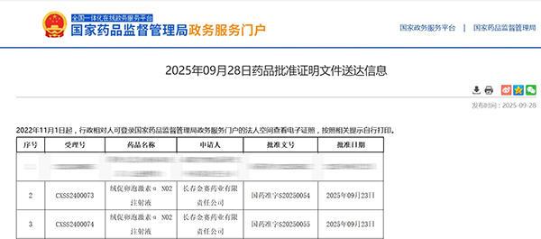 近日,金赛药业收到国家药监局(NMPA)核准签发的《药品注册证书》,其申报的长效重组人促卵泡激素—CTP融合蛋白注射液(FSH-CTP)——绒促卵泡激素αN02注射液(金赛佳)正式获批上市。[详细]