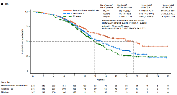 [4]Cheng Y, Chen J, Zhang W, et al. Benmelstobart, anlotinib and chemotherapy in extensive-stage small-cell lung cancer: a randomized phase 3 trial. Nat Med. 2024;30(10):2967-2976. doi:10.1038/s41591-024-03132-1.