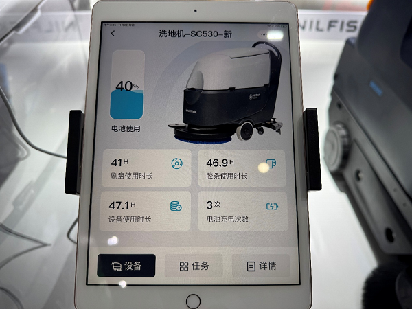而全中国首发的SW3000互动式驾驶式洗地机,则成为现场另一大亮点。其彩色触控大屏搭配PIN码/FOB钥匙启动功能,让设备操作如智能手机般直观便捷;实时故障代码显示与维护专用PIN码设计,让运维工作更精准高效。这款将传统清洁设备升级为“智能终端”的创新产品,为用户带来兼具科技感与实用性的新体验。