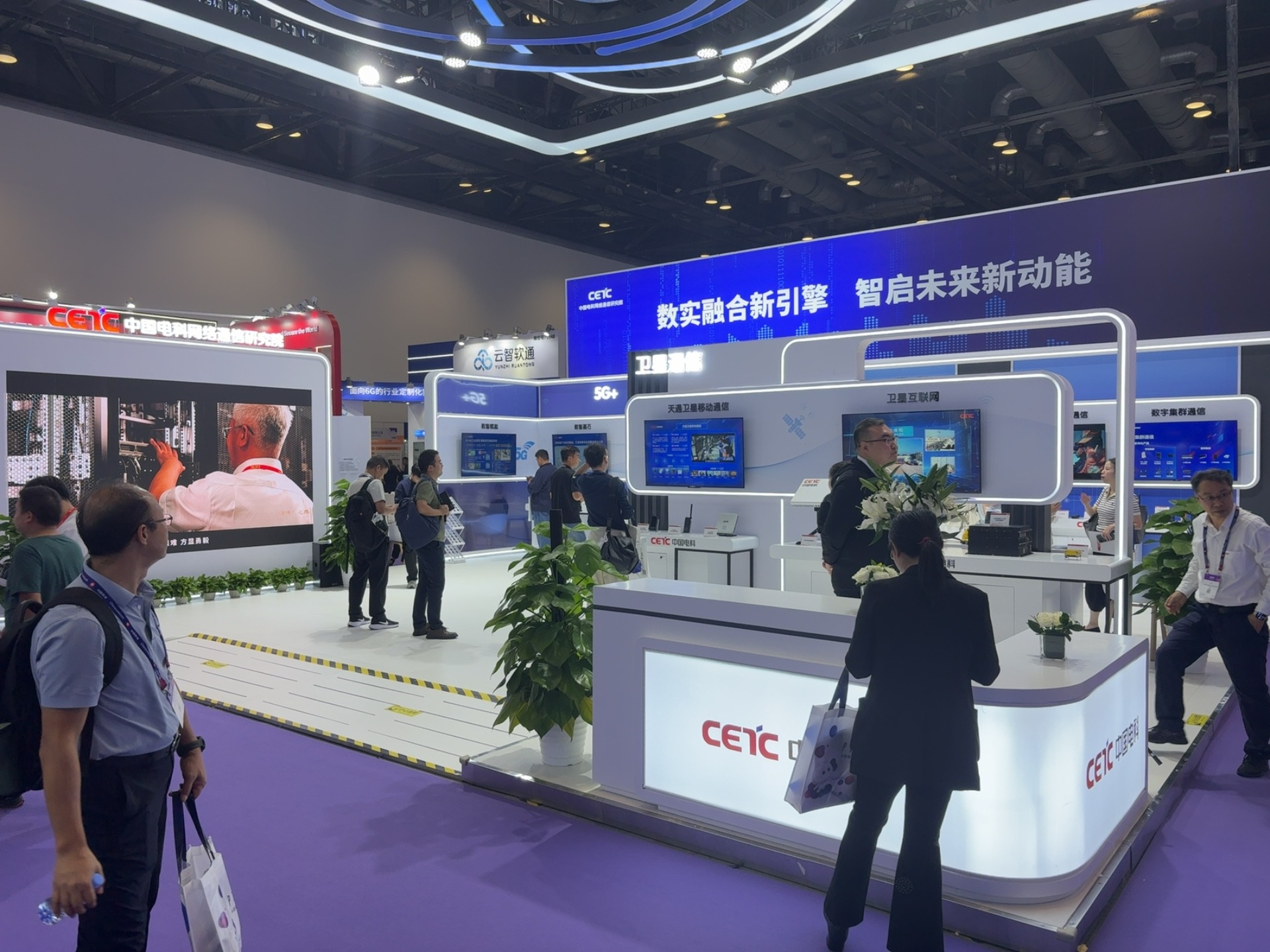 9 月 24 日,2025 中国国际信息通信展在北京国家会议中心盛大开幕。中国电子科技集团(CETC)以 “数实融合新引擎 智启未来新动能” 为主题参展,集中展示卫星通信、5G + 行业应用、北斗导航、数字治理等多领域创新成果,构建起从空天到地面、从技术到应用的全维度通信生态,成为展会中数实融合的标杆力量。