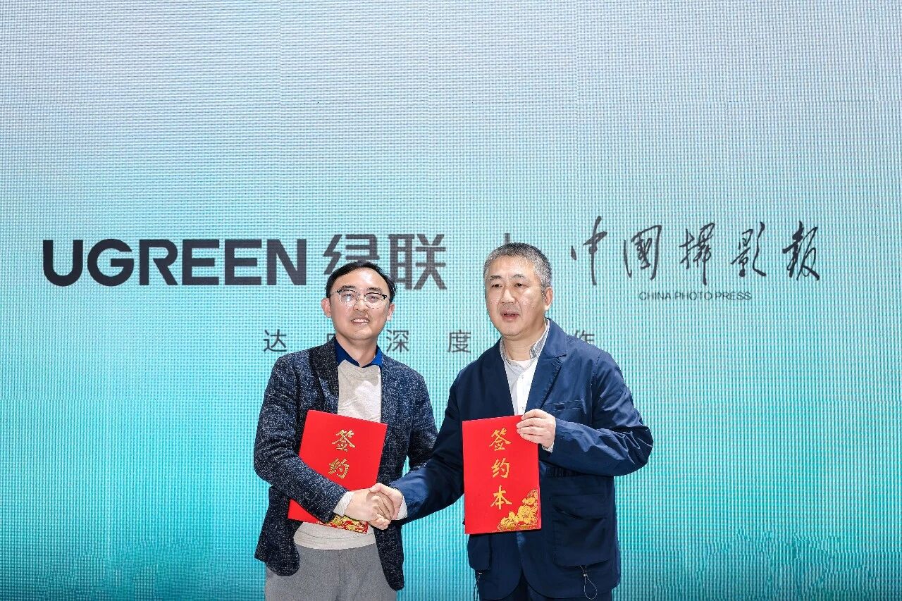 致辞结束后,绿联科技品牌经营部负责人陈小林先生与中国摄影报社副社长吴平先生正式完成战略合作签约。