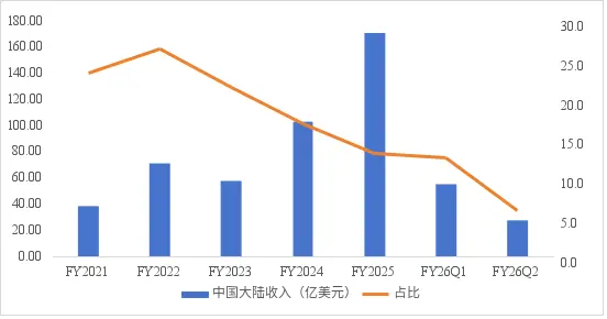 图:英伟达中国大陆收入及占比 数据来源:wind,36氪整理