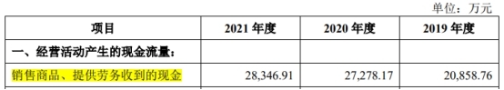 上述同期,公司主营业务收入分别为30,992.17万元、36,594.80万元、41,966.80万元,销售商品、提供劳务收到的现金分别为20,858.76万元、27,278.17万元、28,346.91万元。