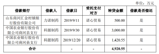 招股书显示,为满足借款银行受托支付要求,科源制药存在通过合并报表范围内公司进行转贷的情形,转贷金额合计4,920.55万元。