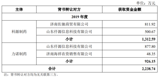 另外,科源制药存在无真实交易背景的票据背书贴现,金额合计2,238.74万元。为加强资金流转效率,公司将来自客户的银行承兑汇票背书转让给关联方或第三方以取得经营资金,相关交易不具有真实交易背景。