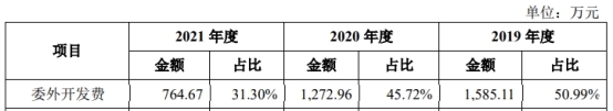 另外,科源制药的研发费用中,委外开发费分别为1,585.11万元、1,272.96万元、764.67万元,占研发费用的比例为50.99%、45.72%、31.30%。科源制药称,公司采用自主研发与委外开发相结合的方式进行产品研发,其中委外开发方面,公司与阳光诺和等知名研发机构合作,共同推动产品的研发进度。