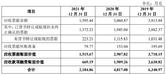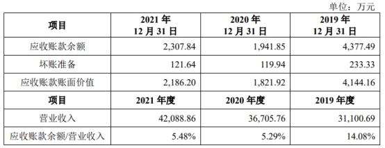 2021年应收账款2308万元、应收票据1595万元