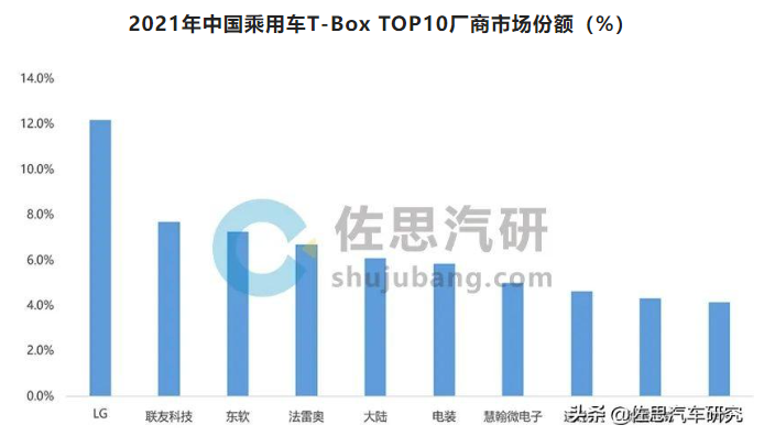 根据佐思汽车研究数据,2021年中国市场乘用车前装(国产)T-Box一级供应商标配搭载量排名中,慧翰股份市场份额位列第七。