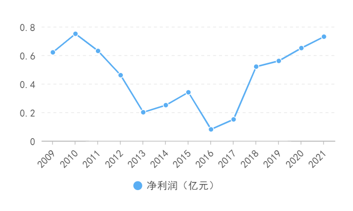 净利润方面,三星财险自2009年至2021年处于持续盈利状态但起伏波动较大,净利润分别为0.62亿元、0.75亿元、0.63亿元、0.46亿元、0.2亿元、0.25亿元、0.34亿元、0.08亿元、0.15亿元、0.52亿元、0.56亿元、0.65亿元、0.73亿元。