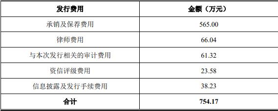 公司可转债发行费用共计754.17万元(不含增值税),具体包括: