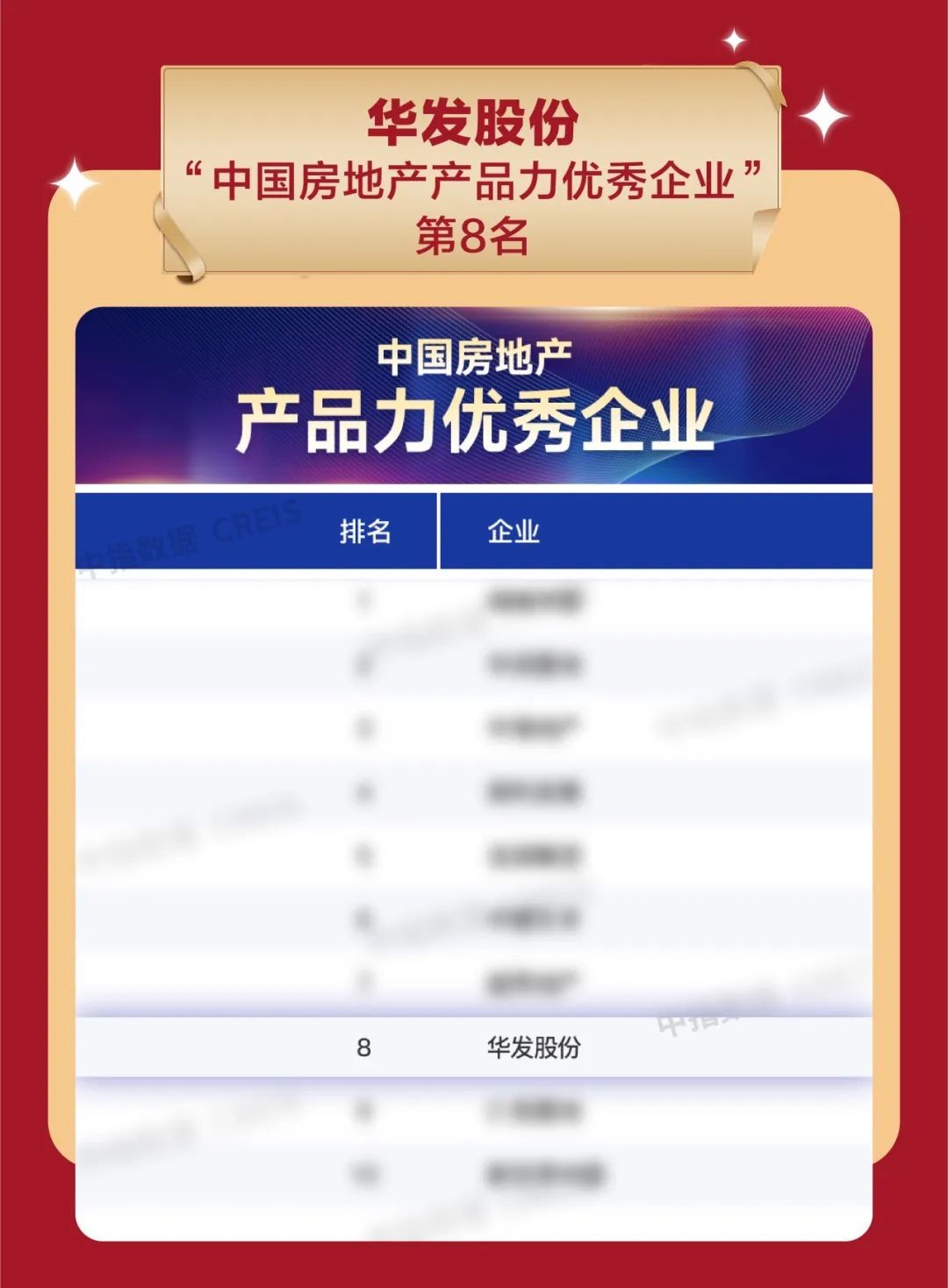 近日由北京中指信息技术研究院主办的“中房指数2023房地产市场趋势报告会”在北京召开,并颁发了多个重磅大奖。华发股份凭借过硬的产品品质和实力,荣获“中国房地产产品力优秀企业”第8名。多个项目获得行业权威机构认可,武汉华发外滩荟项目荣获“2023中国百城建筑新地标”,南京华发四季雅筑、上海华发古美华府获评“2023城市典型样本项目”。