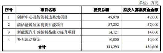 时代新材昨晚披露《2023年度向特定对象发行A股股票预案》显示,本次向特定对象发行股票募集资金总额不超过130,000万元,募集资金扣除相关发行费用后将用于投资以下项目:创新中心及智能制造基地项目、清洁能源装备提质扩能项目、新能源汽车减振制品能力提升项目、补充流动资金。