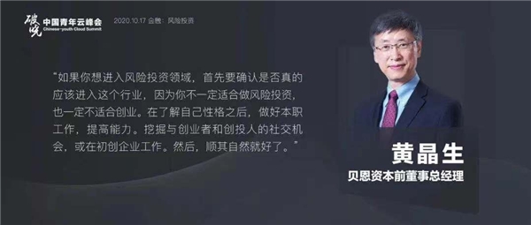 10月17日下午进行了风险投资板块,贝恩资本原董事总经理黄晶生先生作为主持人,介绍了风投板块出席嘉宾——Star VC创始人、影视明星任泉,复星 FOSUN PE执行总裁、美国纳斯达克上市企业独立董事郭弘仁,威诚资本创始人郭威,启明创投合伙人吴静,红枫资本董事总经理张洪霖。圆桌会议探讨了2020年中国创业与投资行业新趋势,新机遇和新格局。在黄晶生先生的主持下,各位嘉宾各抒己见分享了2020年在疫情黑天鹅事件影响下中国创投行业冰火两重天的情况。